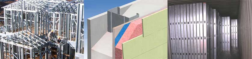 2) expanded polystyrene foam panels placed outside steel framing and shear material